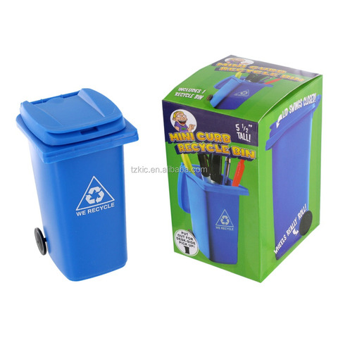 Custom Mini Curbside Garbage Trash Bin Pen Holder Wheelie Bin Desk Tidy Recycle Trash Can Pen Pot Stationery