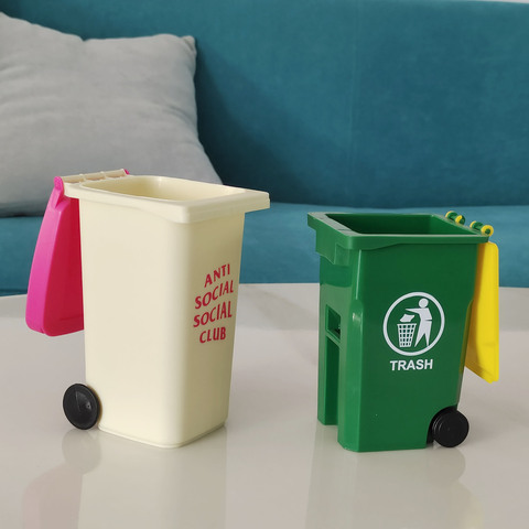 Mini Trash Bin Desktop Pencil Holder Garbage Cans With Wheels PENCIL HOLDER BIN